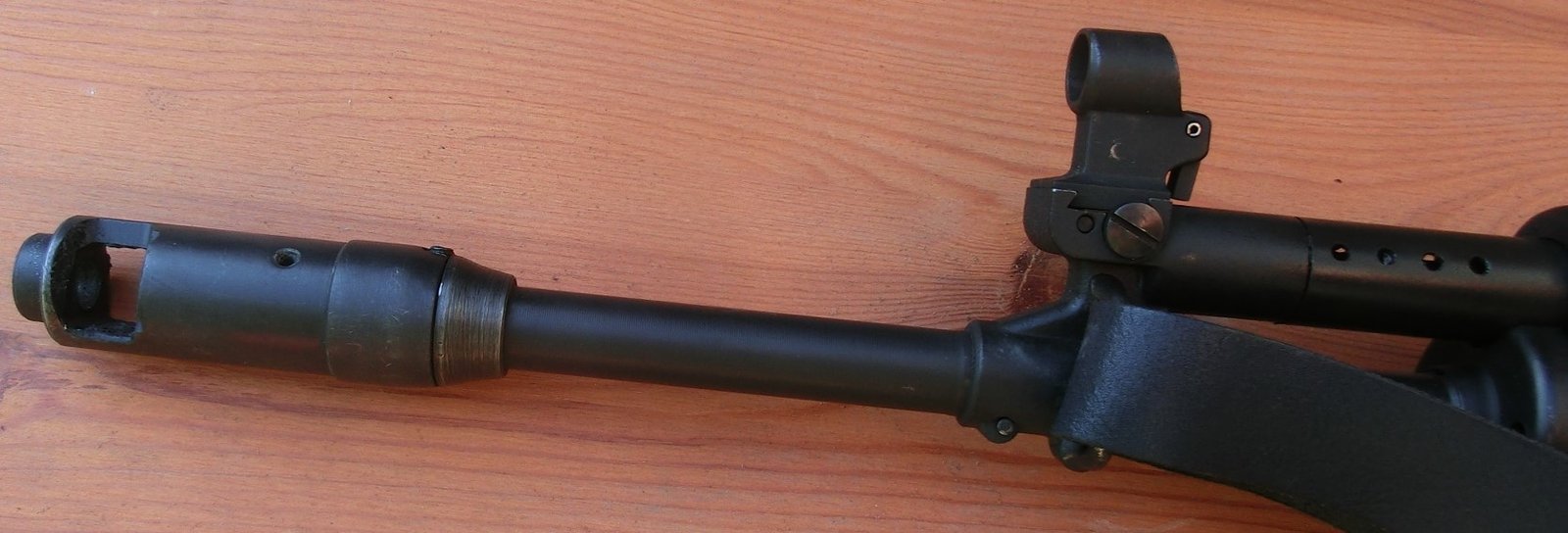 Aseeseen jälkiasennettu mustanitrattu ( typpikaasunitraus) piippu, jossa AK-74:n muokattu liekinsammutin/suujarru. Mukaan tulee myös alkuperäinen kolmisakarainen kotimainen M62 lieskari.